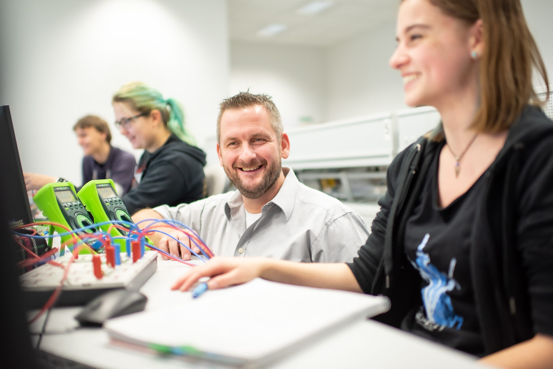 Bei uns geht’s um Angewandte Wissenschaften. Das heißt: Wir reden nicht nur, wir machen auch. Schon während deines Studiums arbeitest du in Laboren und kooperierst mit Unternehmen. Du entwirfst, konstruierst und baust. Du gestaltest mit, gehst raus auf die Straße. Deine Vorteile: