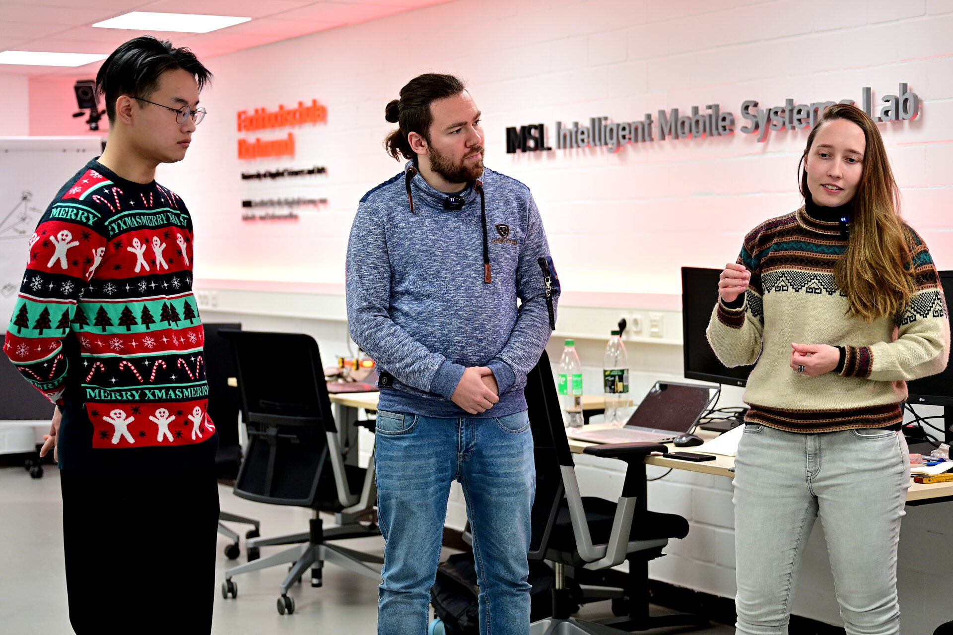 In November 2025, three Master's students from the Faculty of Computer Science took on a special challenge: as part of the block week for the "Autonomous Mobile Systems" module, led by Christof Röhrig and Daniel Heß, they developed methods for calibrating mobile robots in just five days.