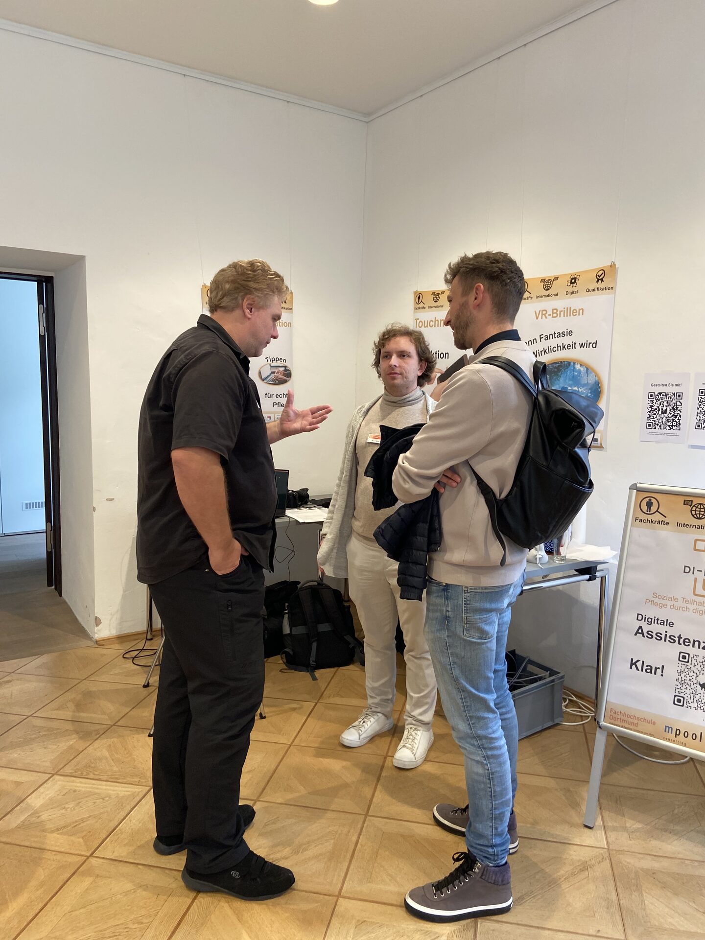 At their stand, Ansgar Rahmacher, Marcel Mitas and Leon Sachweh presented solutions for digital documentation (both by voice and text), VR glasses for the digital experience of landscapes and games to promote movement, as well as a variety of other technical developments.