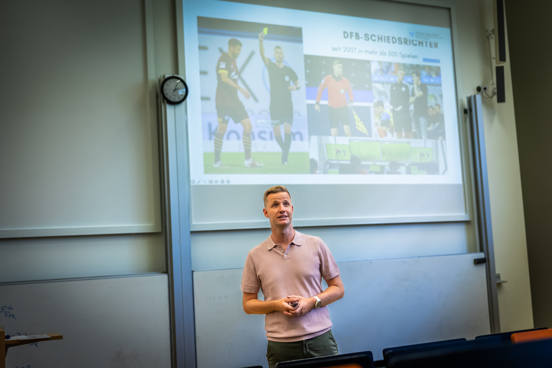 Ein Höhepunkt der Jubiläumsausgabe des Business Events war die Keynote von DFB-Schiedsrichter Dr. Arne Aarnink zum Thema „Was (angehende) Managerinnen von Profi-Schiedsrichtern lernen können“. Die spannende Analyse der Parallelen zwischen Fußball und Management begeisterte viele Studierende und gab neue Impulse für den eigenen Karriereweg.