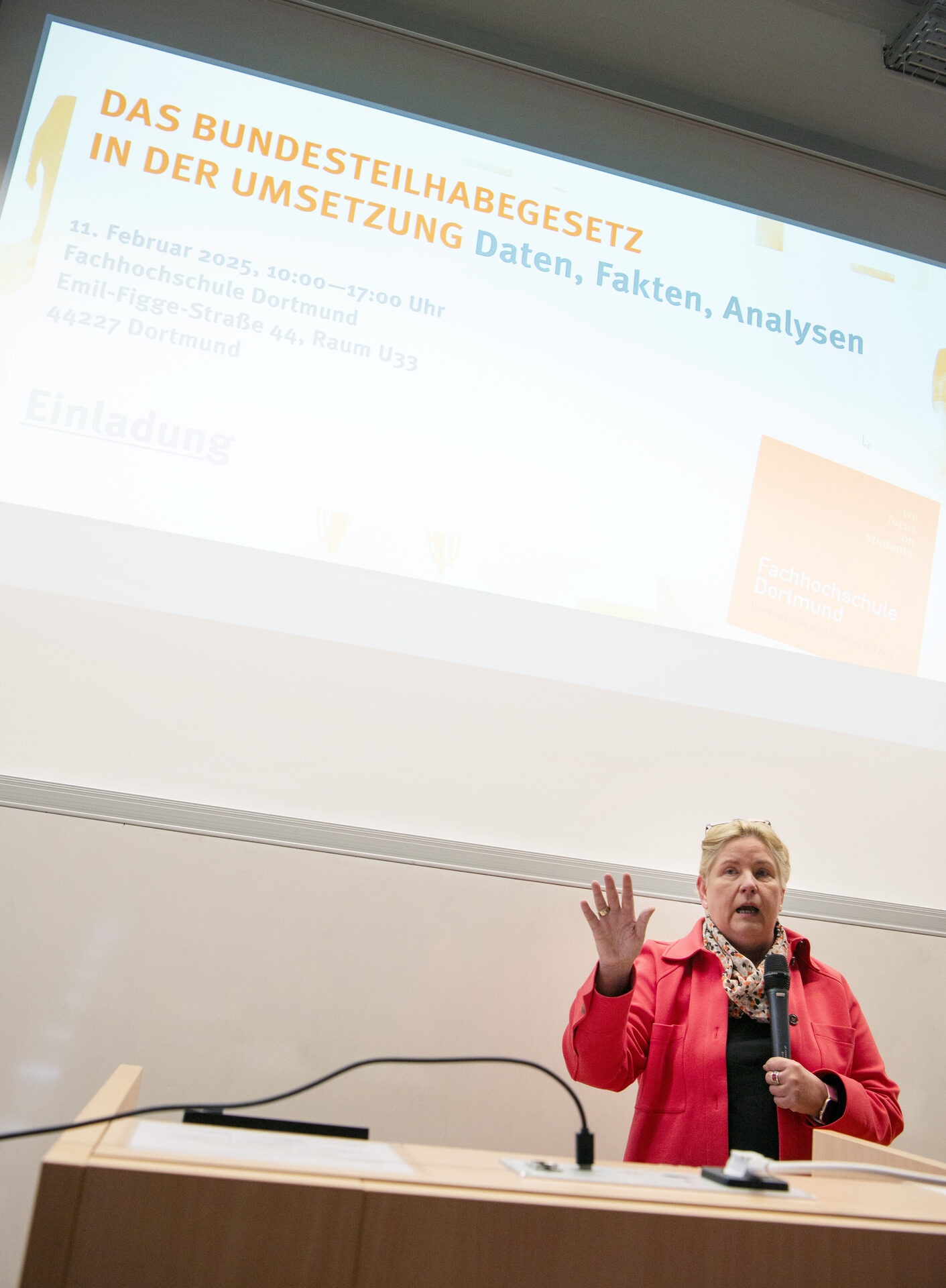 Viele Teilnehmenden hätten sich dafür ausgesprochen, die Reihe dieser Fachtage an der FH Dortmund fortzusetzen. Nicht nur als wertvolle Gelegenheit für den Austausch zwischen Bundes- und Landespolitik und den Leistungsträgern der Sozialhilfe, sondern auch im „herrschaftsfreien Raum“ der Hochschule, der kontroverse Debatten erlaube und Spannungsfelder zwischen verschiedenen Überzeugungen aushalte. Und, ganz wichtig, weiterhin mit konsequenter Einbindung der Menschen, um die es geht.