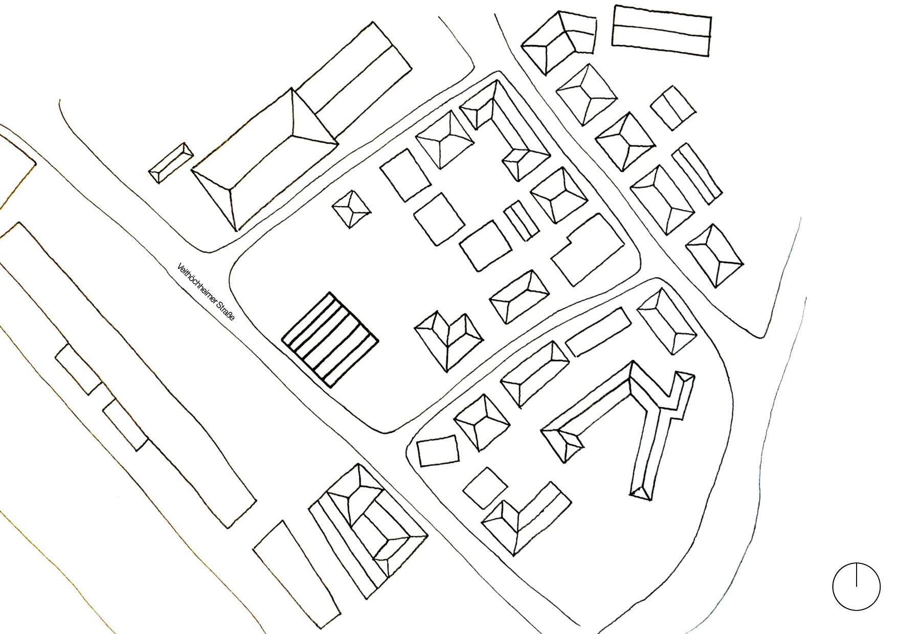 „Die Arbeit ‚Kraftstoff Würzburg‘ schafft mit einer klassischen Aufstockung eine subtile Erweiterung des zuvor bereinigten Tankstellenkörpers. Eine bewegte Dachlandschaft aus differenzierten Satteldächern bringt raumhaltige Qualitäten für vielfältige Nutzungen im neuen Obergeschoss. Die Fläche darunter bietet Zuwegung und Aufenthaltsqualität, auch, weil das Oberlicht der alten Tankstelle als Zitat durchgesteckt wird.“