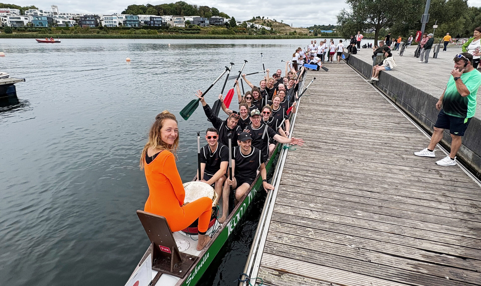Fünf starke, zehn schnelle und dann rund 100 lange Streckenschläge: Mit dieser Strategie paddelte sich das FH-Team beim diesjährigen Drachenbootrennen auf dem Phoenix-See auf einen vorzüglichen Platz 8.